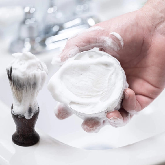 When using a shaving brush: wet brush and swirl in circular motion on soap puck to create a lather before spreading it onto your skin before shaving.